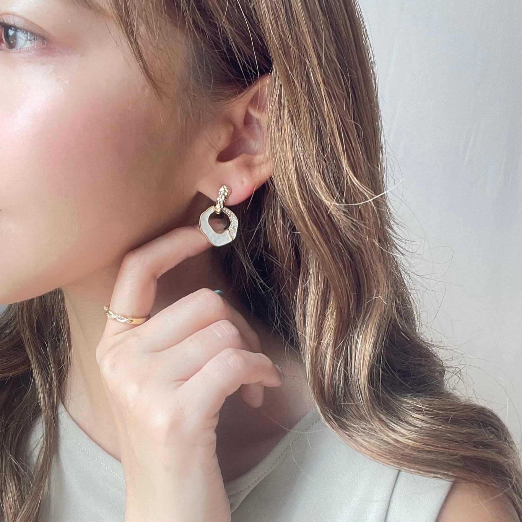 シェル調とストーンの切り返しで清楚かつゴージャスな印象に