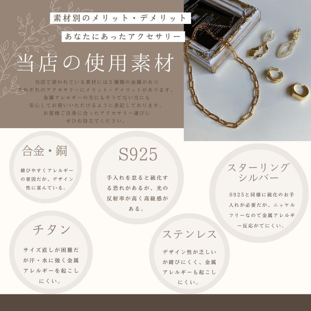 *金アクセサリーをご使用中に万が一、かゆみ・かぶれ等、皮膚に異常を感じた場合には直ちにご使用をお止め頂き、専門医にご相談をお願い致します。