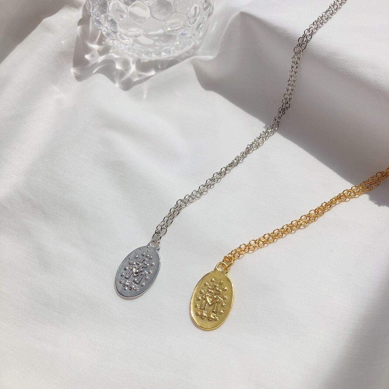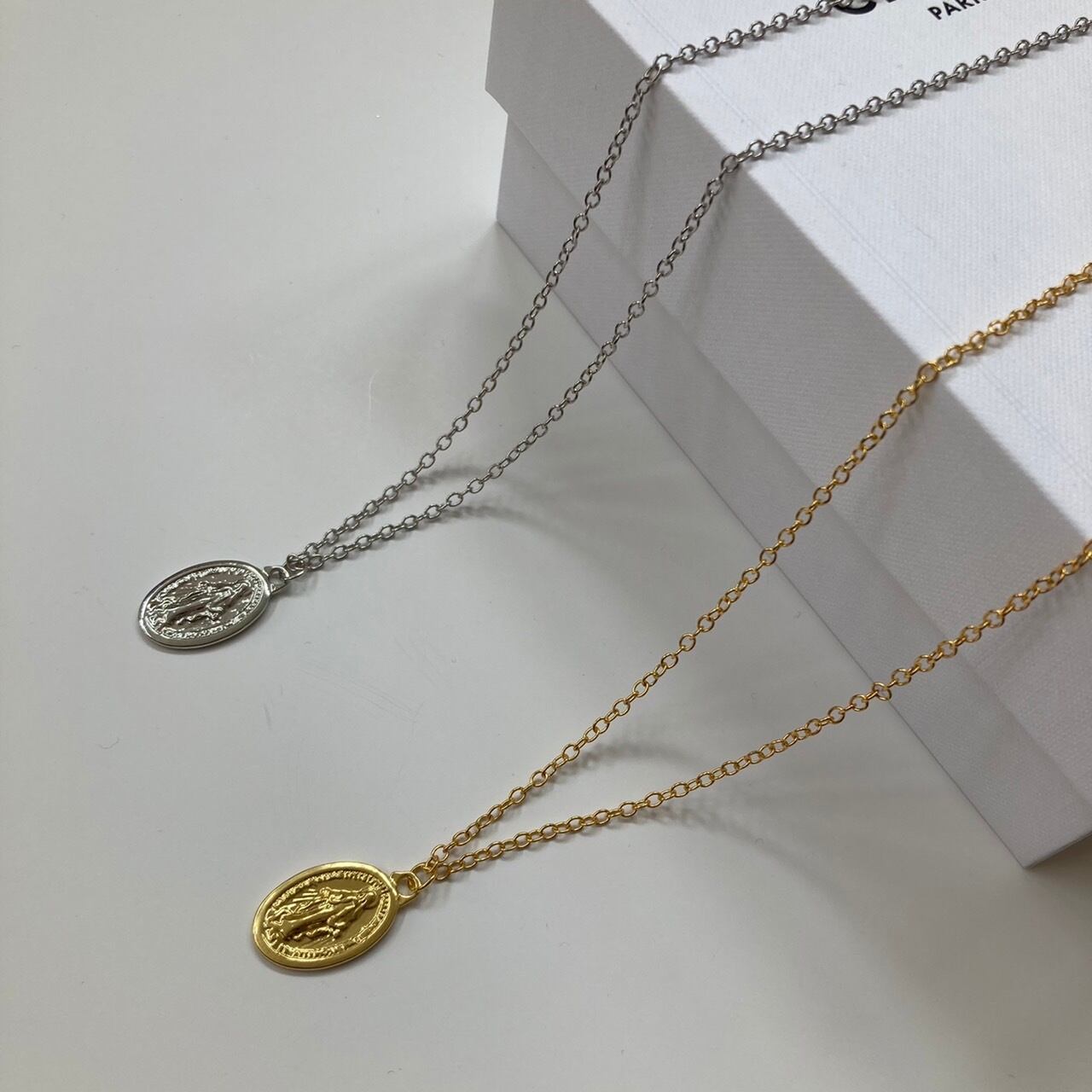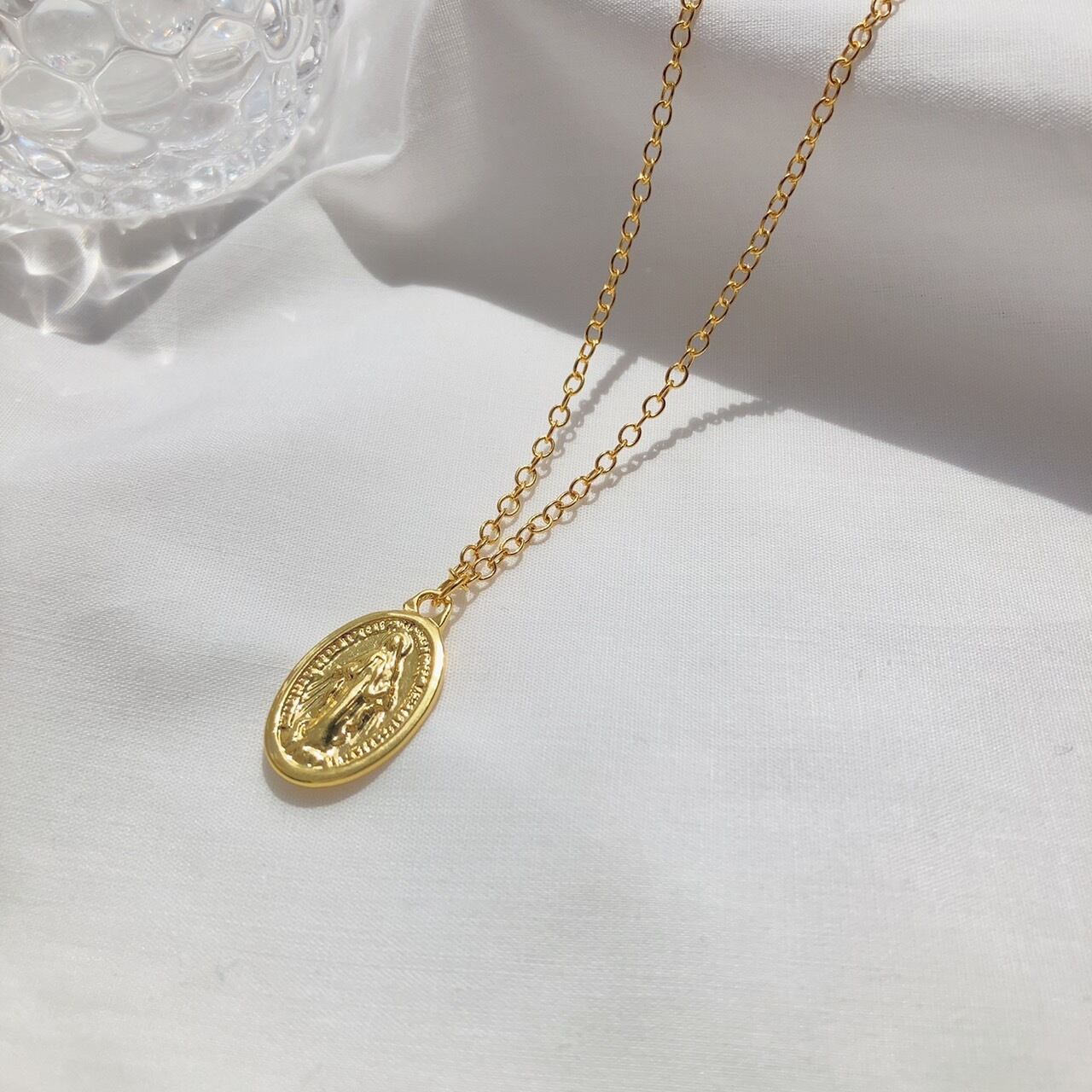 マリア様が光り輝く立体的なコインネックレス
